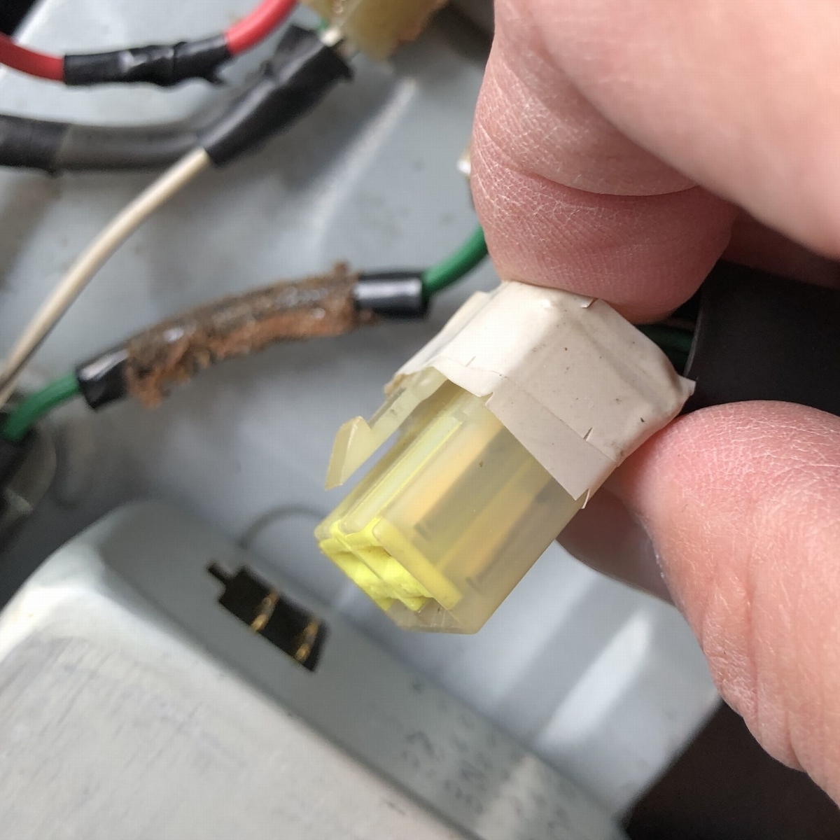 ただしリアワイパーウォッシャースイッチだけは爪を押すタイプではありません。爪を起こしながらコネクターを引っ張ります。
