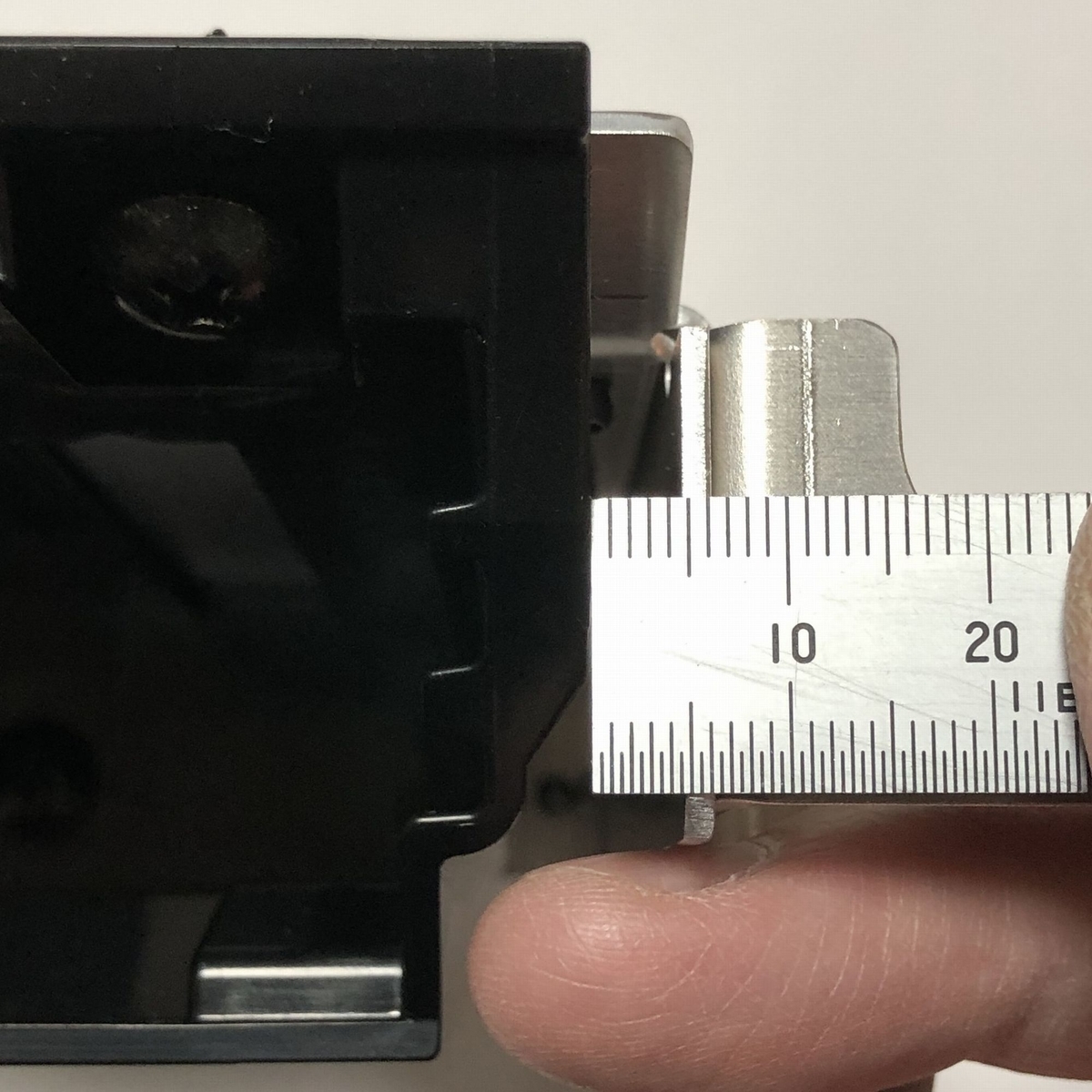 このネジはプラスチック穴にねじ込むので、強く締め付けてはなりません。ネジ穴が破損して固定できなくなります。止まるところまで軽く締めて、5~10度くらい回す感じでOKです。